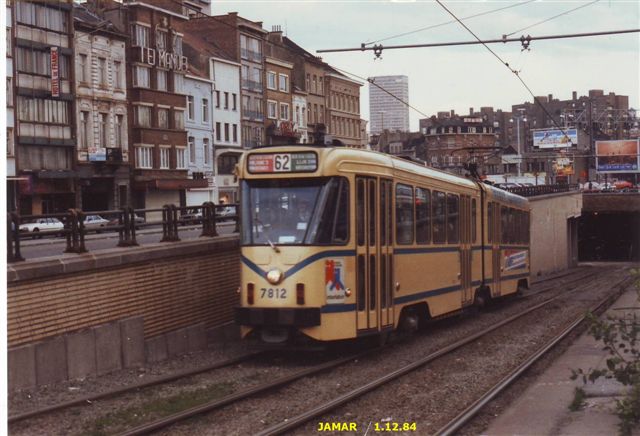 Une photo-régal en ce qui me concerne (désolé pour ceux à qui cela n'évoque strictement rien, comme je l'imagine !) En 1973, d'après la légende, un 62 sort de ce fameux tunnel Lemonnier vers le boulevard du même nom. Un détail infime, une broutille dans l'histoire des grandes restructurations et des grands travaux de Bruxelles. Mais les artisans de ces bouleversements ne pouvaient certainement pas imaginer qu'un simple gosse de même pas dix ans, doté de facultés médiumniques brouillonnes, allait découvrir le pot aux roses (ou le poteau rose ?) d'une vaste, que dis-je : une colossale entreprise parallèle, occulte. De là à endiguer le phénomène il y a une marge que je me garderai bien de franchir car nous n'en avons nullement les moyens, bien évidemment. Faire la lumière sur le problème me paraît déjà bien suffisant. Lors de mes recherches, j'ai remarqué un fait que je considère comme assez curieux bien qu'il soit historique et donc inattaquable, c'est que la STIB, entendez le Société des Transports Intercommunaux bruxellois n'a vu le jour qu'en 1954 ce qui me semble tout particulièrement tardif vu que, d'une part, je suis né en 1958 et que la présence du même type de trams me paraissait remonter à bien plus tôt dans le temps. Il est vrai que les trams existaient à Bruxelles depuis belle lurette mais ils étaient gérés par d'autres sociétés telles que "Les tramways bruxellois" ou la SNCV. Un autre point important dans les investigations réside dans le fait que nous avons déjà cité, à savoir que l'ancienne "Gare du Midi" se trouvait jadis place Rouppe, l'un des endroits qui avaient aussi toute ma vénération tramistique (il faut de temps en temps savoir inventer des mots, non ?) et que cette place, à laquelle aboutit l'avenue de Stalingrad, était copieusement fréquentée par des trams vicinaux (les motrices étaient donc d'un type différent, facilement reconnaissable et surtout : l'écartement des rails ne correspondait pas à celui des trams de la STIB ! Voilà un point important qui aura sans doute eu de nombreuses conséquences insoupçonnées !)