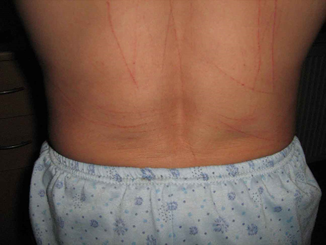 Madame explique que, ne dormant pas, lorsqu'elle ferme les yeux, elle voit des "sortes de moines" devant et derrière elle, qui la poussent et lui font mal. Et les traces apparaissent. Mais elle en rêve aussi dans son sommeil et, leur fille nous le confirmera peu après, ce rêve récurrent a lieu une fois tous les deux jours, alternativement chez la mère et chez la fille, une fois l'une et une fois l'autre ! Dans le cas de Cathy, elle ne voit pas des moines, mais bien des présences, des ombres, ils procèdent de même et la similitude est frappante. Sauf que, dans son cas, il n'y a "que" des traces de strangulation qui lui ont occasionné des douleurs dans toute la mâchoire, tant à gauche qu'à droite. Fort heureusement, les marques ont déjà presque disparu, se fondent sous le maquillage et nous n'insistons pas, d'autant que chez sa mère aussi, les traces ont tendance à disparaître rapidement (en 2 à 3 jours) ce qui est assez étrange chez une hémophile. Il doit sans doute s'agir d'une hémophilie légère car les sujets très atteints à ce sujet ont tendance à être moins nombreux chez les éléments du sexe féminin, pour des raisons anatomiques faciles à expliquer.