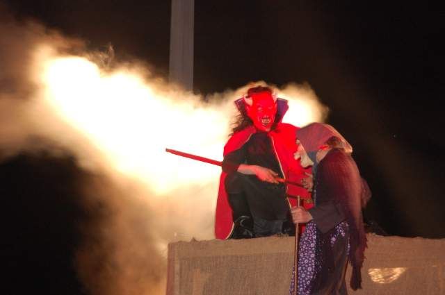 Justement, les sorcières arrivent à grands renforts de flammes et de cracheurs de feu qui illuminent l'assistance et réchauffent l'ambiance. Elles viennent raconter leurs méfaits au grand Satan et là, toute l'atmosphère du sabbat reprend vigueur, on retrouve derrière la mise en scène tout le savoir faire de Jacques Vandewattyne et son héritage génial.