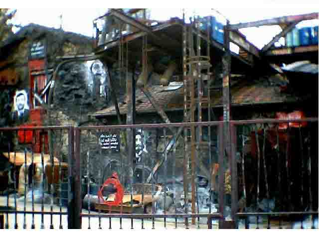la propriété à l'aide d'une grue). Dans la cour, des carcasses de voitures et d'avion offrent aux passants un paysage désolé. Enfin, murs et toitures portent les