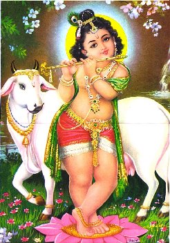 Krishna centre de la dévotion (l'amoureux, le séducteur, le joueur de flûte). Il est fréquemment montré jouant de la flûte, séduisants les gopîs (les gardiennes de