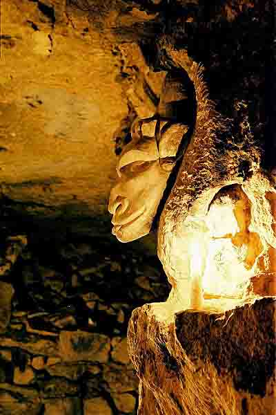 Bien que nous aurons l'occasion de revenir sur les légendes entourant ce lieu mystérieux à souhait, nous pouvons d'ores et déjà vous présenter quelques passages remarquables qui ne manquent pas d'étonner et d'éveiller notre curiosité empreinte de surnaturel et de paranormal. Vous remarquerez notamment, grâce aux images que nous vous proposons ici, des sculptures diaboliques (y aurait-il d'autres mots qui conviennent ?) qui prennent tout leur relief en ces bas fonds obscurs.