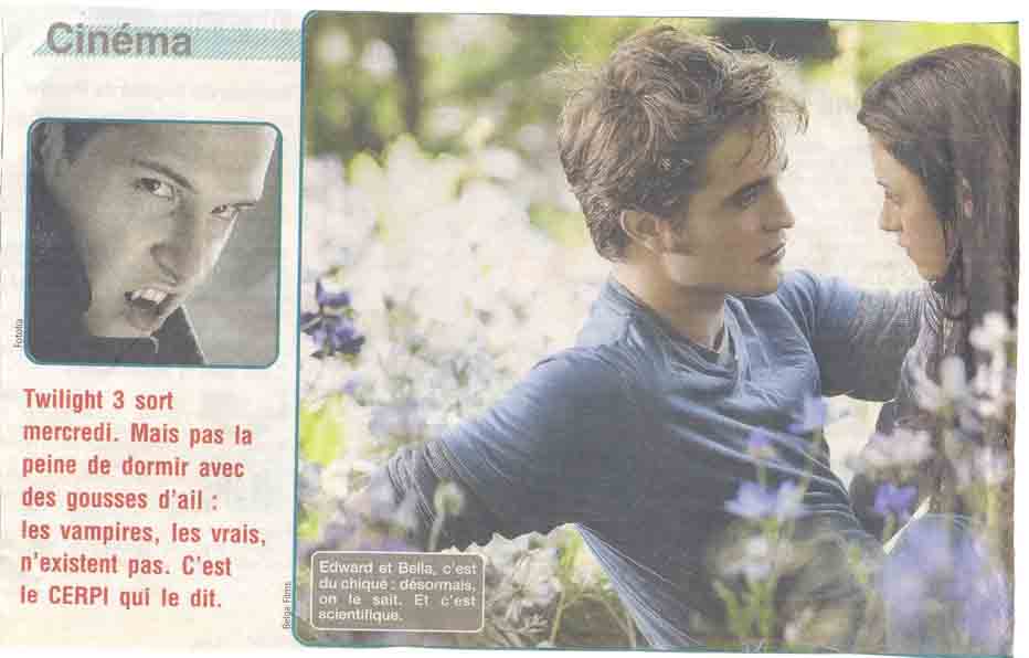 L'Avenir de ce samedi 26 juin 2010 sortait dans son supplément "cinéma" un article plein de mordant sur Twilight, la fameuse saga qui met en scène des vampires des temps modernes. Derrière cet article sans prétentions se cachait, une fois de plus, une interview de M. Vanbockestal, réalisée par le journaliste Michaël Degré. Bien que, aujourd'hui encore, cet article soit disponible sur le site du journal: http://www.lavenir.net/article/detail.aspx?articleid=8884267 en voici le texte au format papier, avec nos commentaires.