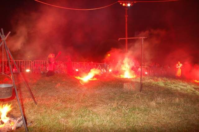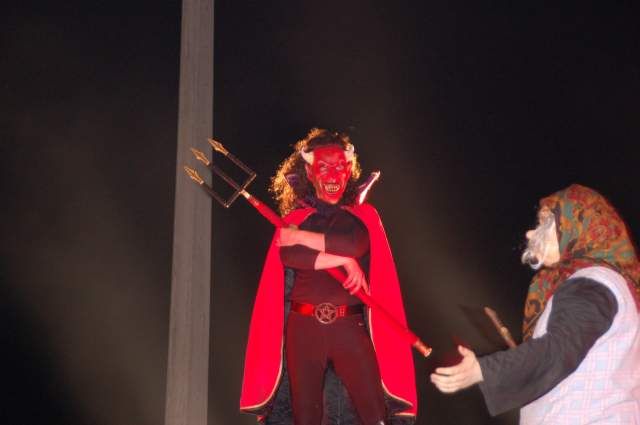 Justement, les sorcières arrivent à grands renforts de flammes et de cracheurs de feu qui illuminent l'assistance et réchauffent l'ambiance. Elles viennent raconter leurs méfaits au grand Satan et là, toute l'atmosphère du sabbat reprend vigueur, on retrouve derrière la mise en scène tout le savoir faire de Jacques Vandewattyne et son héritage génial.