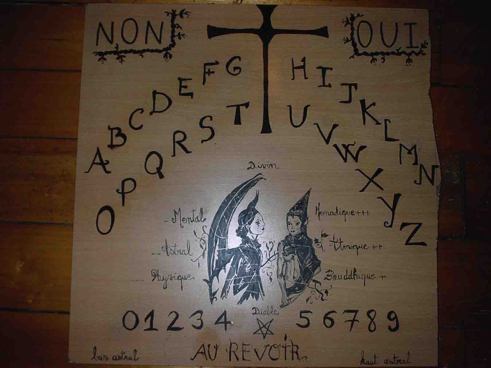 On place le ouija en papier, à même le sol poussiéreux, puis on allume une bougie. On se place tous les trois dans un