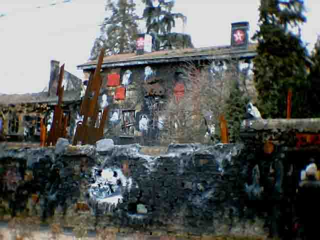 fer rouillés et la peinture rouge dégoulinant des arbres contribuent à faire de cette «Demeure» un décor de film d'épouvante.