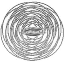 La lumière n'est pas une onde comme les vagues sur l'eau, mais elle en a certaines caractéristiques. Comme les vagues sur l'eau lorsque vous lancez des cailloux, la lumière peut interférer avec la lumière, et cela peut donner toutes sortes de résultats, comme montré ici. On appelle parfois cela un "effet de moiré." Ce dernier est important dans notre étude car facilement provoqué par les APN. Vous pouvez imaginer qu'un brin de poussière ou un petit insecte est un peu comme un bateau sur l'eau, qui fait des vagues autour de lui, avec le flou qui fait se superposer, interférer, ces vagues en tout sens. Cela vous donne quelque chose de globalement rond mais avec une texture chaotique, c'est ce que l'on peut voir, avec toutes sortes de variations, évidemment, sur les photos d'orbes. Nous remarquerons que c'est ce que l'on peut effectivement voir sur certaines de nos photos. Observez l'image de droite et vous ferez vite le rapprochement avec des cas exposés ici. Bien sûr, le plus souvent il n'y a pas ces jolis effets. Dans ces cas, les gens qui ont pris la photo comprennent simplement qu'il n'y a pas de mystère, que ce n'est que de petites particules floues, et ils n'en font pas toute une histoire.