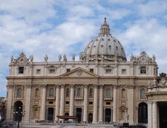 Le palais pontificalLe palais pontifical, soit les appartements publics et privés du pape et de la Curie pontificale, renferme une partie des musées et autres salles décrites plus haut, au premier ou au deuxième étage. Il n’est pas possible de visiter la majorité du palais pontifical, même si celui-ci renferme des œuvres artistiques qui mériteraient notre attention. Par exemple, tout près de la statue illustrant Constantin sur son cheval se trouve la base de l’escalier royal, autre réalisation du Bernin. Cet escalier mène à une salle, la Salle royale, mais également à la Salle des Bénédictions, juste au-dessus du portique de la Basilique. Cet escalier a ceci de particulier, à savoir qu’à cause des contraintes physiques de l’endroit, le Bernin n’a pu, à l’époque, le construire aussi majestueux qu’il l’aurait souhaité. Pour pallier à cela, il en modifia les dimensions et proportions de telle sorte que la perspective, lorsqu’on le regarde de loin, donne plutôt l’impression d’observer un escalier deux fois plus long et large qu’il ne l’est en réalité.