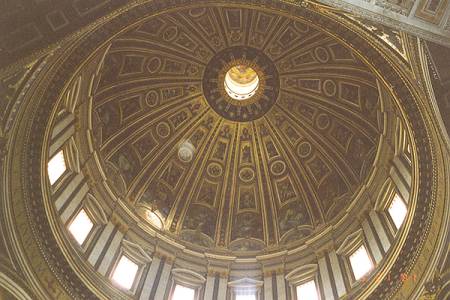 Œuvre principalement due à Michel Ange mais aussi attribué à Bramante et Giacomo della Porta et Domenico Fontana, la coupole Saint Pierre est la plus grosse en son genre à Rome et sûrement une des plus célèbres de par le monde. La coupole surplombe la basilique et est soutenue principalement par quatre énormes piliers, chacun ayant un périmètre de 71 mètres. Au centre de la coupole, la hauteur atteint près de 118 mètres, et le diamètre à la base de la coupole fait plus de 42 mètres. Il est intéressant de noter que les piliers, dénudés au départ, furent embellis à l’aide quatre immenses statues 32 ans après l’achèvement de la coupole, sous la direction du Bernin. Il créa lui-même l’une des statues, celle de Longin, et les trois autres furent l’œuvre d’élèves du Bernin. Ces statues et piliers ont de telles dimensions que l’une (celle de saint Longin) abrite les installation de Radio Vatican, une autre (celle de sainte Véronique) y accueille une chambre pour la conservation de reliques, et finalement, deux chapelles se logent dans les derniers piliers (saint André et sainte Hélène). Par ailleurs, des escaliers pour accéder aux grottes vaticanes sous la Basilique se nichent dans les piliers.