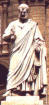 Constantin fils ou 1er est né en 286 et mort en 337. Ce jeune homme qui est devenu empereur à la mort de son père combat une bonne partie de sa vie afin d’éliminer ses compétiteurs. Plusieurs de ses batailles sont reliées à des considérations religieuses. Bien que n’étant pas chrétien lui-même au départ, sa mère, une chrétienne avouée, l’incite fortement à se faire baptiser, ce qu’il fera avant de rendre un dernier soupir. Précédemment à ce baptême tardif, Constantin, en bon politicien et voyant la religion chrétienne prendre de plus en plus de place, décide d’abolir les persécutions. De plus, avec l’édit de Milan de 313, Constantin se rallie à la faveur des chrétiens, ce qui est politiquement ingénieux, les chrétiens prédominant dans l’empire. Dans un autre ordre d’idées, Constantin fait aussi en sorte de réunifier tout l’empire pour ensuite fonder Constantinople (324-330) sur la ville de Byzance, au détroit de Bosphore. Cette ville devient rapidement la nouvelle capitale de l’empire. Fait nouveau, Constantinople est presque exclusivement sous l’égide de la chrétienté et les temples païens sont peu abondants. Mais pour en revenir à nos intérêts et plus particulièrement à Rome, Constantin fait construire sur le tombeau de Saint Pierre une basilique pour remplacer un monument déjà existant. Cette basilique est composée de cinq nefs (la partie de l’église qui s’étend du chœur jusqu’à l’entrée principale), d’un transept (la partie de l’église qui sépare de façon transversale le chœur de la nef, en forme de bras de croix) et une abside (l’extrémité en demi cercle du chœur d’une église). Le tout peut être atteint par l’ascension d’un escalier de trente-cinq marches qui mènent à l’entrée principale en atrium (en référence à la pièce principale de la maison romaine) et à une fontaine pour les absolutions. Cette basilique n’est pas encore fréquentée par le pape du temps, mais représente tout de même les premières fondations de l’actuelle Basilique Saint-Pierre. Malheureusement, elle tombe en ruine, mais elle est reconstruite en 350.