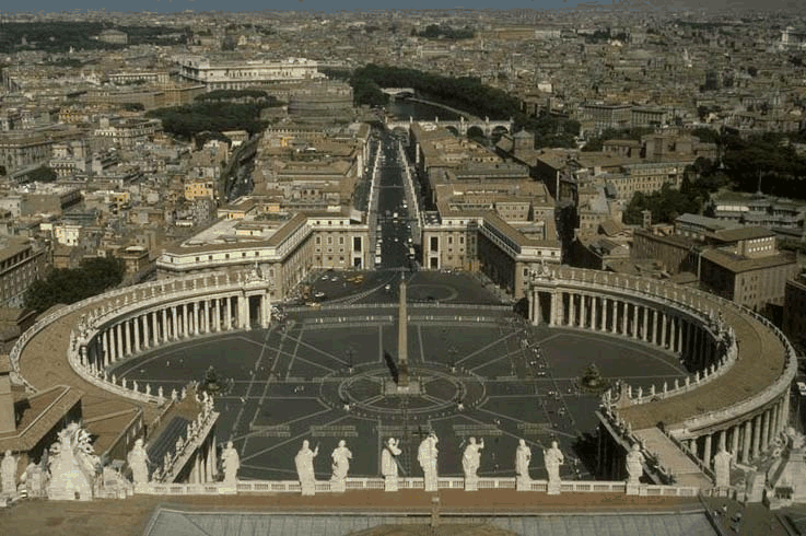 A Rome, le visiteur qui passe le Tibre serpentant au milieu de la ville et emprunte l'avenue de la Conciliation, brèche rectiligne taillée par les architectes du fascisme (NDLR : introduire aussi tôt la notion de fascisme dans un texte concernant le Vatican, voilà qui est... fâcheux, n'est-ce pas ?), débouche sur la place Saint-Pierre. Et devant la majesté simple des deux demi-cercles de colonnades dessinées par Bernini pour "tenir dans leurs bras la chrétienté entière", (NDLR : parle t'on ici au sens figuré ou au sens propre, ce qui révélerait une idée de possession ? Mais chassons cette pensée... démoniaque !) aussi devant cette façade baroque de la basilique, oeuvre de Maderno, qui ne parvient pas à éclipser l'harmonie de la coupoule (NDLR : mettez-lui plutôt une coupole, SVP !) projetée par Michel-Ange ce visiteur sera sans doute pris par la sérénité, la magie des lieux. Il se sentira - ce qui est la plus pure vérité transporté au coeur de la religion, de la spiritualité. La proximité du Saint-Père lui donnera la certitude de toucher le fond de la croyance. Il attendra une apparition papale au grand balcon. Il priera, emporté par le mouvement (tout canalisé) de la foule. (NDLR : s'il y a là une allusion aux moutons de Panurge, nous nous étonnons qu'une personne supposée sensée puisse la pondre. Avez-vous remarqué le déploiement des services de sécurité qui accompagnent, notamment en Belgique et à l'heure où ces lignes sont écrites, la visite de M.Bush. Et pourtant, il n'est pas d'essence divine, lui ce serait plutôt le pétrole ! - En fait, en parlant de se trouver au coeur de la religion (catholique en l'occurrence, on peut se demander si, eu égard à ce que l'auteur avance par la suite, ce dernier n'a pas voulu attaquer la valeur de celle-ci)