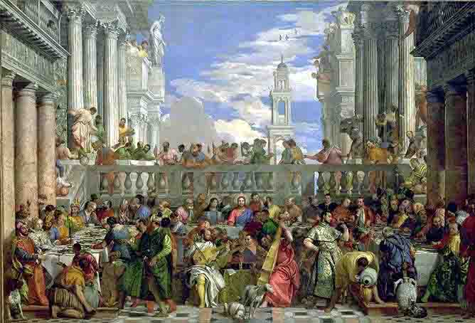 Avec son format impressionnant de 666 (?) x 990 cm, "Les Noces de Cana" est sans doute le plus imposant des tableaux anciens présents dans les collections nationales françaises, et en tout cas, de celles du Louvre. Il est à noter que la hauteur de 666 centimètres n'est pas un clin d'œil à l'Apocalypse de saint Jean mais une pure coïncidence, puisque le système métrique n'existait pas à l'époque de Véronèse (666 cm = 3 toises, 2 pieds et 6 pouces). Quant à nous, si nous n'avons aucune difficulté à admettre qu'il s'agisse d'une coïncidence, nous nous contenterons de signaler que cela en fait une de plus dans un dossier déjà bien fourni en la matière.