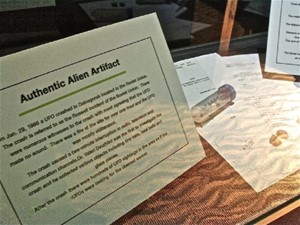 aliens authentiques". L'exposition comprend un flacon contenant de petits fragments de métal. Ils ont été trouvés après l'accident d'un objet inconnu, qui s'est produit