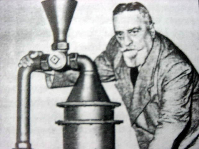 l'exact contraire du moteur à explosion. Viktor Schauberger était un défenseur de "l'implosion au lieu de l'explosion", il rejetait le moteur à explosion car