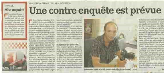 loin puisque rien ne nous laissait penser qu'il s'agissait d'un faux. C'est donc l'une des nombreuses pistes qu'il nous faudra écarter". (M. Bougard - La Gazette du