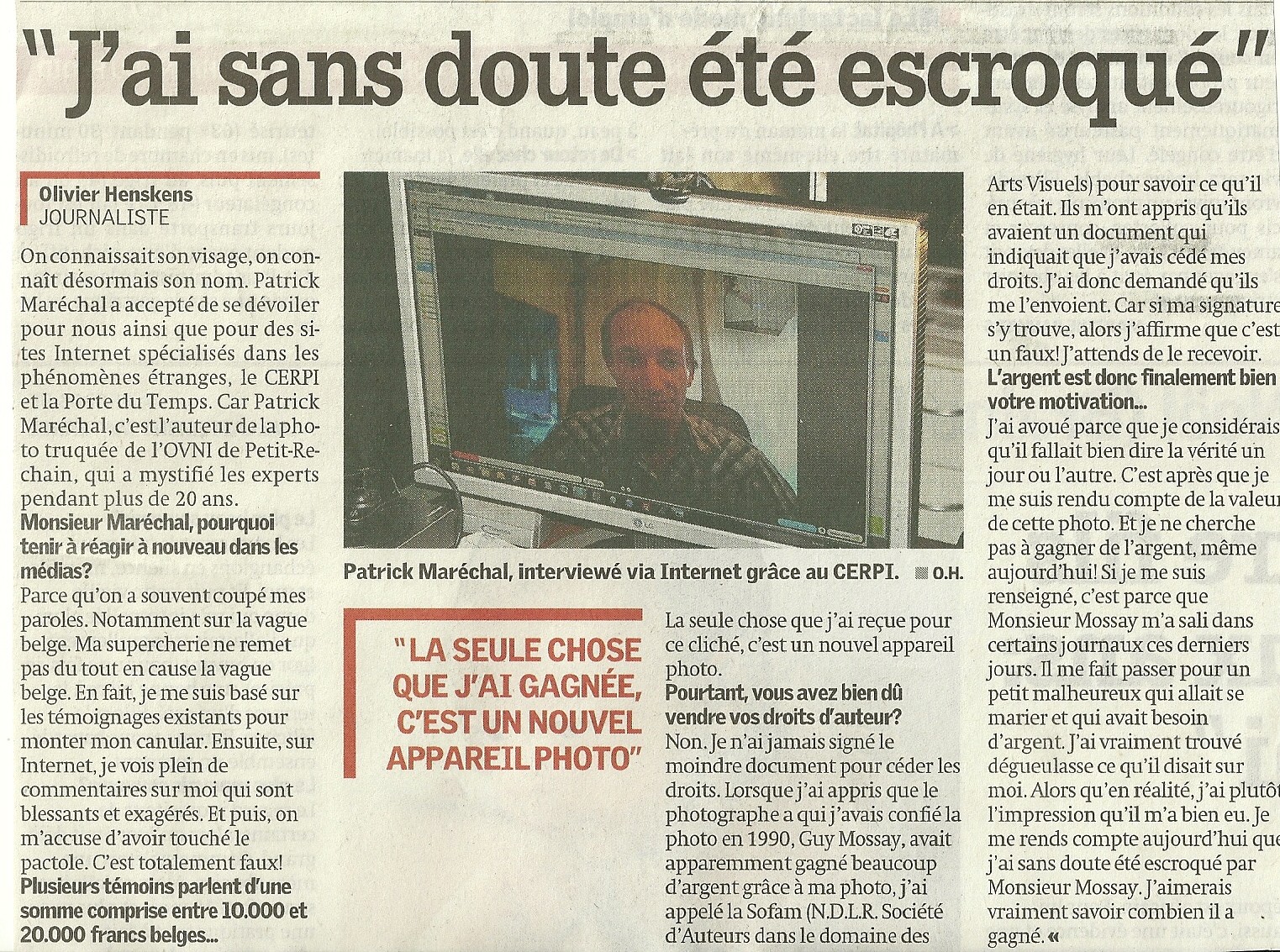 Dans cet article (voir ci-contre et ci-dessous), M. Guy Mossay parle d'une manœuvre qui frisait dès le départ l'escroquerie, puisque Patrick savait que la photo était