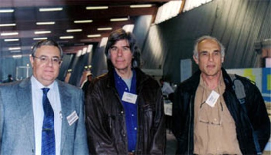 Photo : Vicente-Juan Ballester Olmos, Patrick Ferryn et Léon Brenig - Brenig est chef de travaux à l'Université Libre de Bruxelles (Belgique), physique théorique (service du professeur Ilya Prigogine).