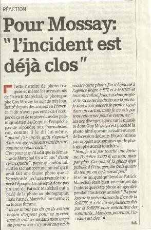 Dans cet article (voir ci-contre et ci-dessous), M. Guy Mossay parle d'une manœuvre qui frisait dès le départ l'escroquerie, puisque Patrick savait que la photo était